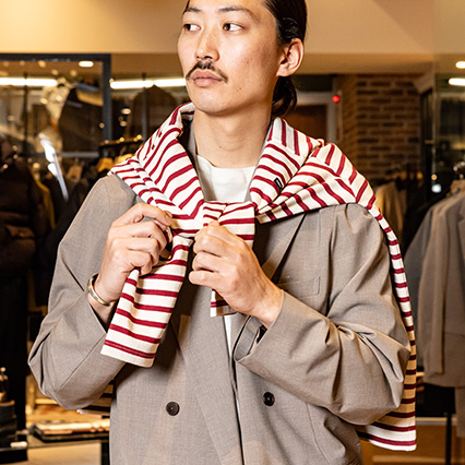「ル ドーム エディフィス エ イエナ 丸の内」は、メンズの「エディフィス」とウィメンズの「イエナ」で構成されたセレクトショップ。「エディフィス」ではフレンチファッションをベースに、気品溢れるスタイルを提案しています。今季はジャケットなどの定番を大切にしつつ、現代的なトレンドを織り交ぜる「レガシー・シック」を打ち出しています。エスプリの効いたフレンチマインドは、丸の内の雰囲気にもベストマッチ。大人の男性にこそふさわしい、とってもナイスなラインナップを取り揃えていますよ!